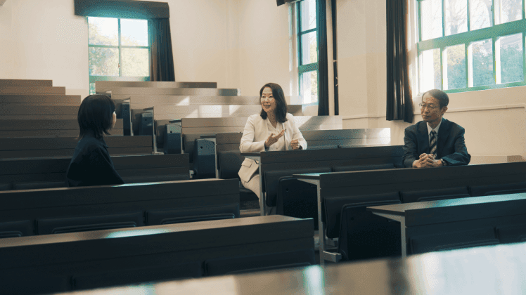 今回のテーマは「幸せ」について。 経済経営学科 長谷川克之教授と小西由樹子准教授が、経済学・経営学の視点から学生と考えていきます。