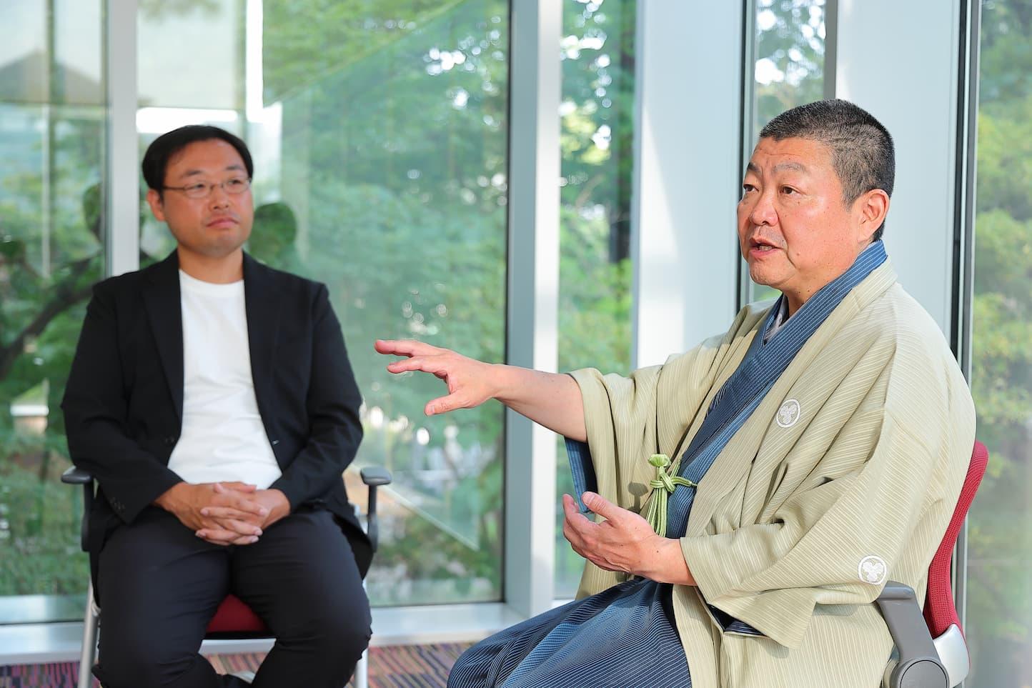 伝統文化と聞くと、「難しそう」「敷居が高そう」と感じるかもしれませんが、そんなに構える必要もなければ、意外なところで現代のエンターテイメントにつながっています。それが今も多くの人が劇場や寄席に足を運び、歌舞伎や落語を楽しんでいる理由の一つともいえそうです。ここでは歌舞伎を研究されている光延真哉先生と本学の客員教授でもある落語家の柳亭左龍師匠に、それぞれの視点から伝統文化の魅力や現代文化に通じる楽しみ方を語っていただきました。