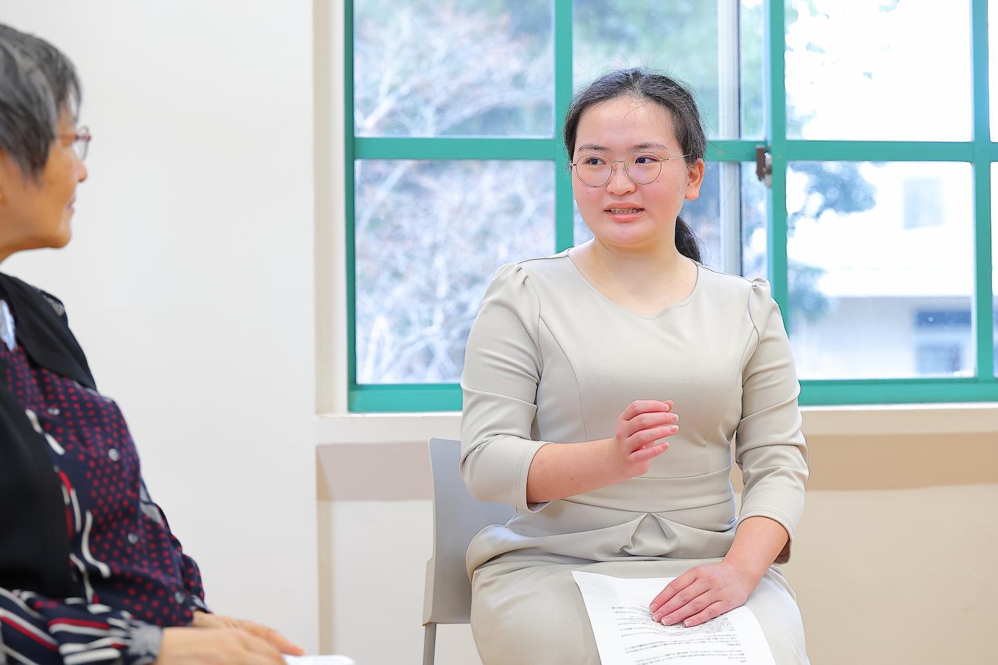 私は2年次からデータサイエンス副専攻(※)を履修したことをきっかけにAIや翻訳に興味を持ちました。膨大なデータ量はAIの強みで、即時的に知らない単語や言い回しを提供してくれます。その一方で勝手に情報を生成してしまうところもあるので、やはり鵜呑みにしないことが大事だと思います。